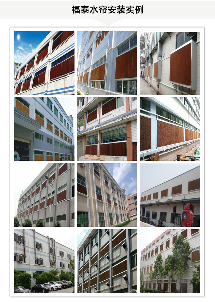 福泰在安裝水簾方面也是有幾千家實例客戶了,安裝的水簾不僅美觀,降溫效果要好外而且保證水簾不漂水漏水現象,讓客戶用的放心比較重要。福泰水簾紙也是比較環保的所以同樣的水簾不一樣的質量所以你會發現市 面上的水簾價格乘次不齊的,所以如果你需要幫你識別慧眼的行內人幫你普及你才能對這個產品更多認識才能買的經濟實惠降溫效果好,試用壽命長的降溫通風設備水簾風機安裝。