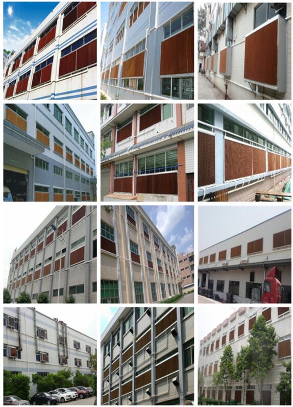 方法一是:根據(jù)風(fēng)機的數(shù)量,可以按一臺風(fēng)機配置4-5㎡的濕簾不計算所需濕簾的總面積,再根據(jù)廠房的實際窗戶尺寸分配各個窗戶的濕簾面積(一般以濕簾充滿整個窗戶為宜,應(yīng)保證濕簾與窗戶交接處的密封)。如廠房原有窗戶數(shù)量不夠,則另需開墻洞提供足夠的風(fēng)量。